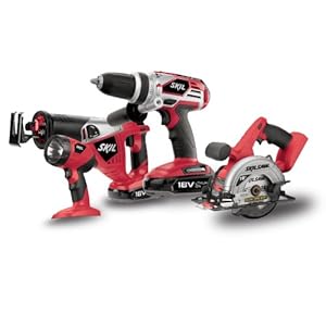The Skil 2895LI-20 18-volt 4-tool combo kit includes a 1/2-inch drill-driver, a reciprocating saw, a circular saw and a pivot-head flashlight. The 2-speed drill-driver can deliver 0-450 and 0-1,400-RPM with 400 inch/pounds of torque. The 2895LI-20 features a Power plus system, so it's compatible with both lithium-ion and NiCad batteries. The lithium-ion batteries included in the kit are 50-percent lighter weight, to minimize user fatigue, and can hold a charge 4 times longer than NiCad batteries, so they're ready whenever you need them.