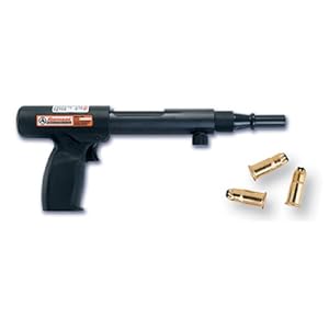 Specifications: Uses standard .22 caliber single shot powder loads 2 (Brown), 3 (Green), 4 (Yellow), Weight: 4.1 lbs, Length: 14-3/4-inch, Muzzle Bushing O.D.: 3/4-inch, Maximum Pin Length: 3-inch.